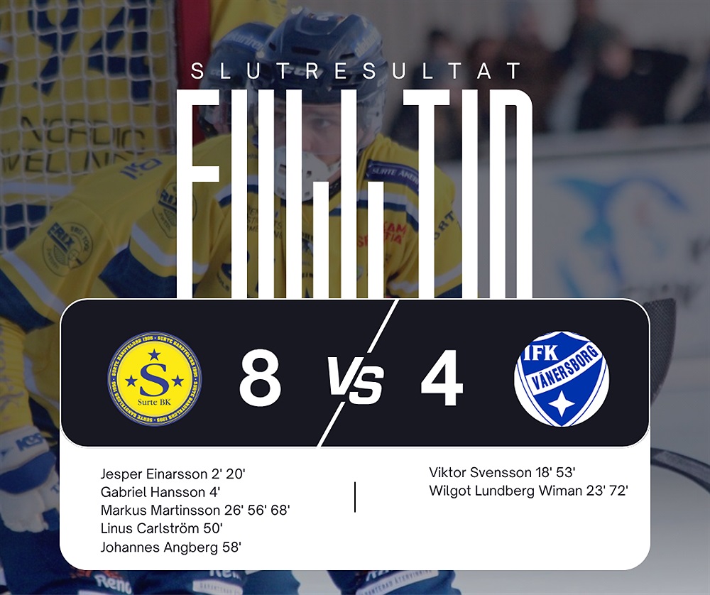 Det blev en ny seger för våra herrar och denna gång mot Vänersborgs P19 med 8-4. Notabelt är att 4 av Surtes mål kom på hörnor och att Markus Martinsson gjorde 3 mål.