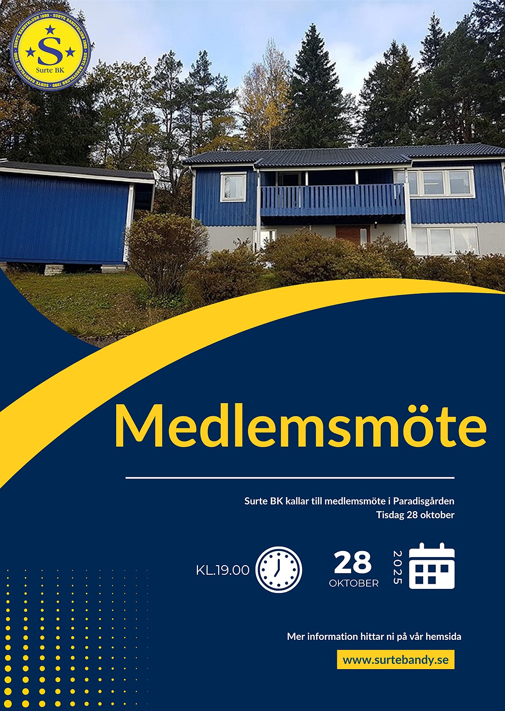 Surte Bandyklubb kallar till medlemsmöte i Paradisgården tisdag 28 oktober kl.19:00.
