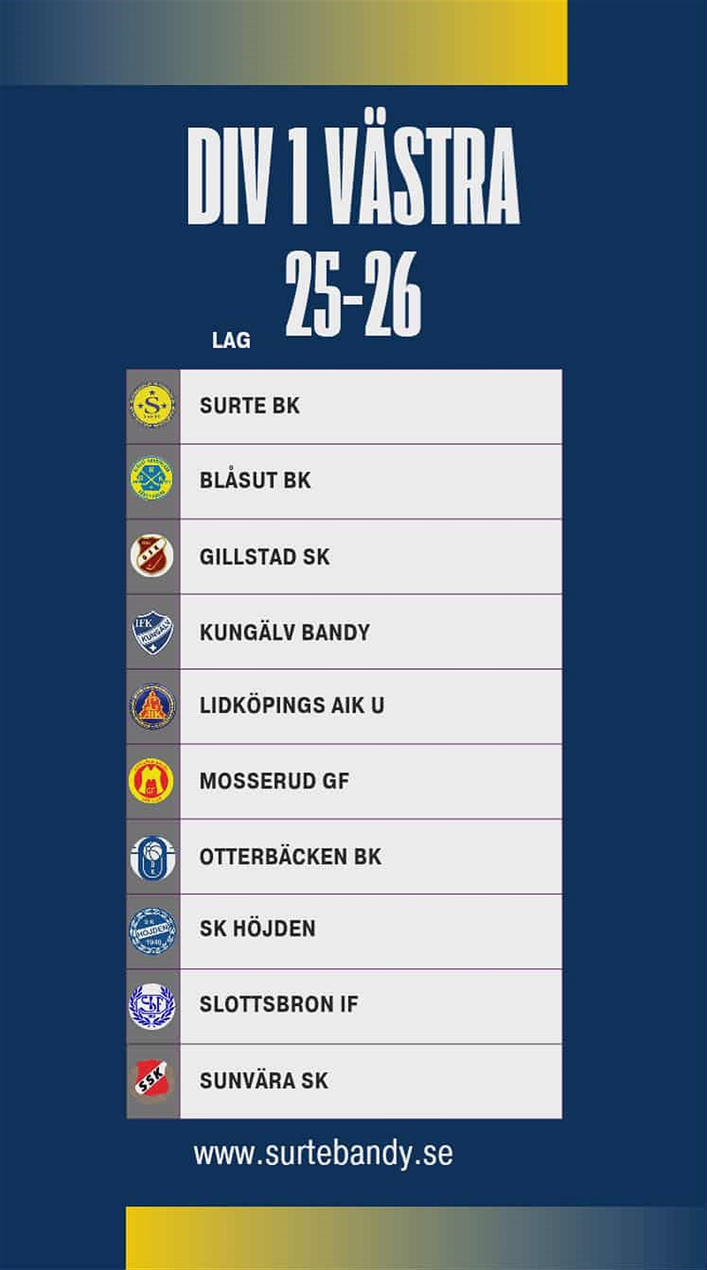 Serieindelningen för div1 västra säsongen 25-26 är nu klar och den ser ut enligt följande.