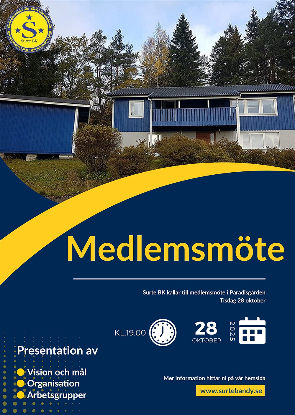 Surte Bandyklubb kallar till medlemsmöte i Paradisgården tisdag 28 oktober kl.19:00.