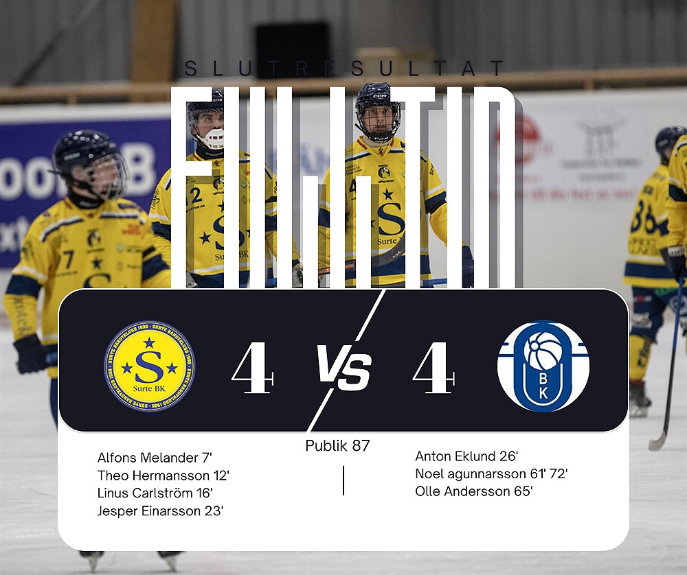 Nästa match för Surtes del blir hemma i Ale Arena mot Gillstad på söndag 14 december kl.13:00.