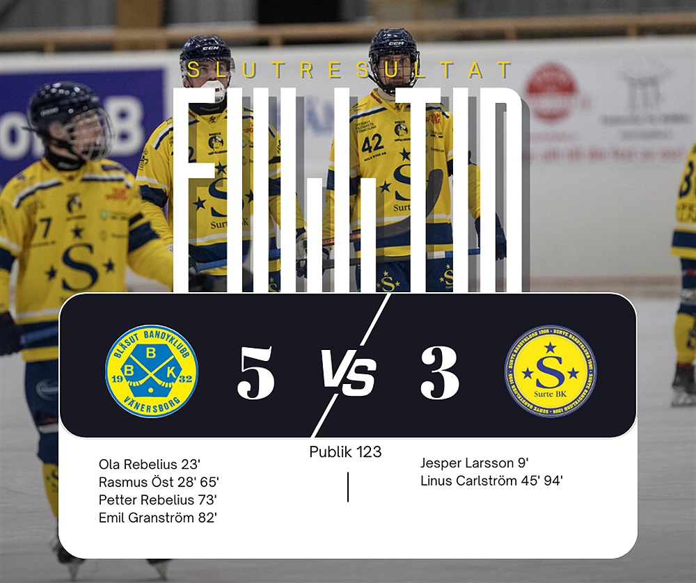 Första förlusten för Surte i årets serie är ett faktum när laget förlorade en tuff och delvis hård match borta mot Blåsut med 3-5.